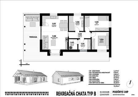 Nachádza sa pri vstupe do oblasti po pravej strane a na predaj je určených 5 chát s možnosťou využitia len ako rekreačná chata, nie na trvalé bývanie. Zastavaná plocha chaty je 112,40 m2, čo zodpovedá úžitkovej ploche 73 m2 + 25 m2 krytá terasa. Chata má 3 obytné miestnosti a svojou rozlohou a dispozičným riešením je ideálna pre 4-5 člennú rodinku. Je možné vytvoriť aj podkrovný priestor nad celou časťou domu, alebo len nad obytnými miestnosťami – galériu o rozmere úžitková plocha podkrovia 50m2 + 14m2 balkón.